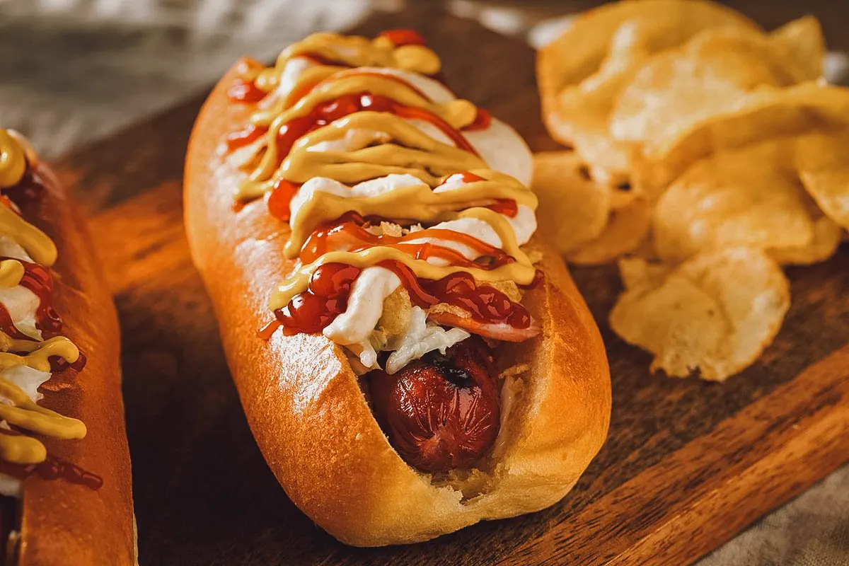 A gourmet Danish hot dog is a refined take on Denmark’s beloved pølsevogn classic — a street food staple elevated with artisanal ingredients and elegant presentation. The star is typically a high-quality, all-pork sausage, lightly grilled to achieve a crisp snap, crispy onions, pickled cucumbers and Remoulade, mustard & ketchup.